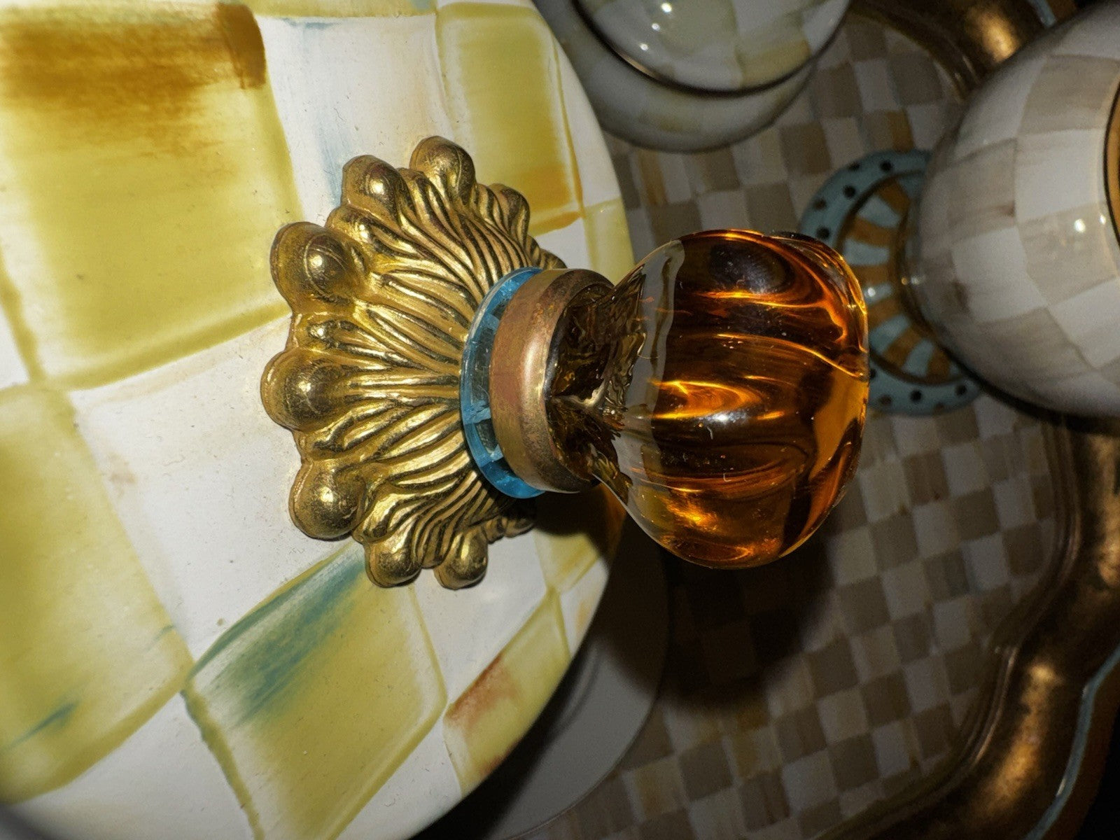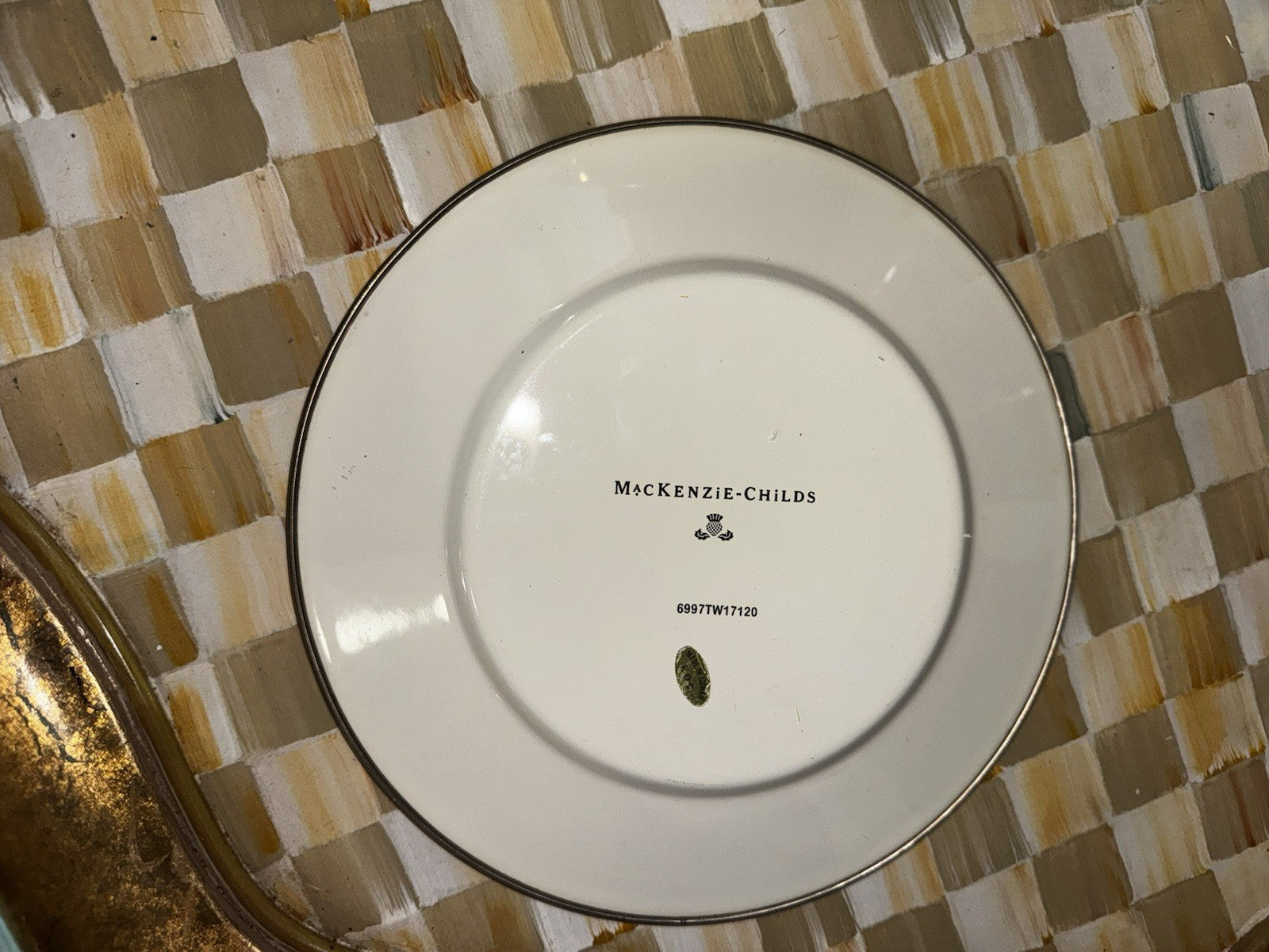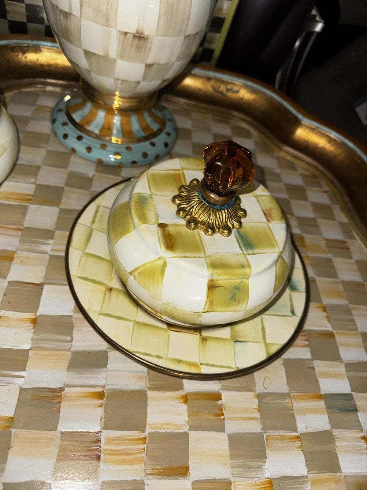 Parchment check butter round with blue ring