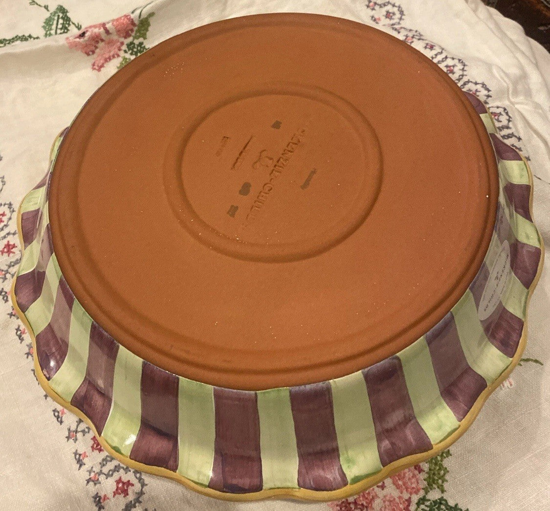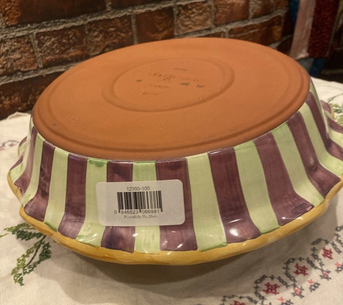 The NEW Mackenzie Childs 10" Piccadilly Fluted Pie Dish is a charming and unique addition to any kitchen. Handmade and painted with a beautiful majolica finish, this pie dish features a classic Piccadilly pattern in a vibrant and colorful design. The fluted edges add a touch of elegance, making it both functional and stylish. Perfect for baking and serving pies or tarts, this pie dish is sure to be a conversation starter and a centerpiece in your dining room.