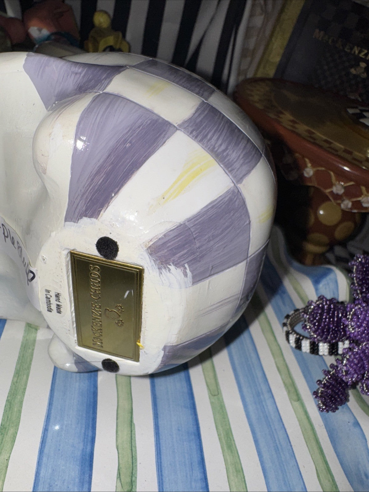 The MacKenzie-Childs Plum Check Skull is a decorative collectible made of resin, featuring a unique multi-color plum check design. This original piece measures 4.5" wide, 5.25" tall, and 6" deep, making it a standout addition to any collection or display. With its eye-catching style and high level of detail, this sold-out item is sure to be a coveted piece for collectors and enthusiasts alike.