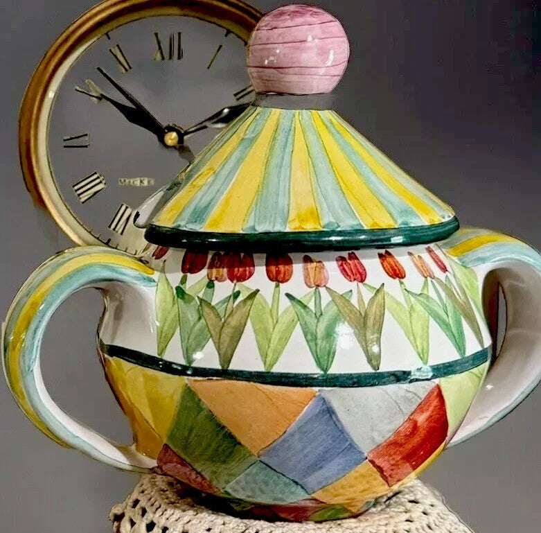 Mackenzie Childs Taylor Summer Frock Hand Made Ceramic Vase- Retired 1988