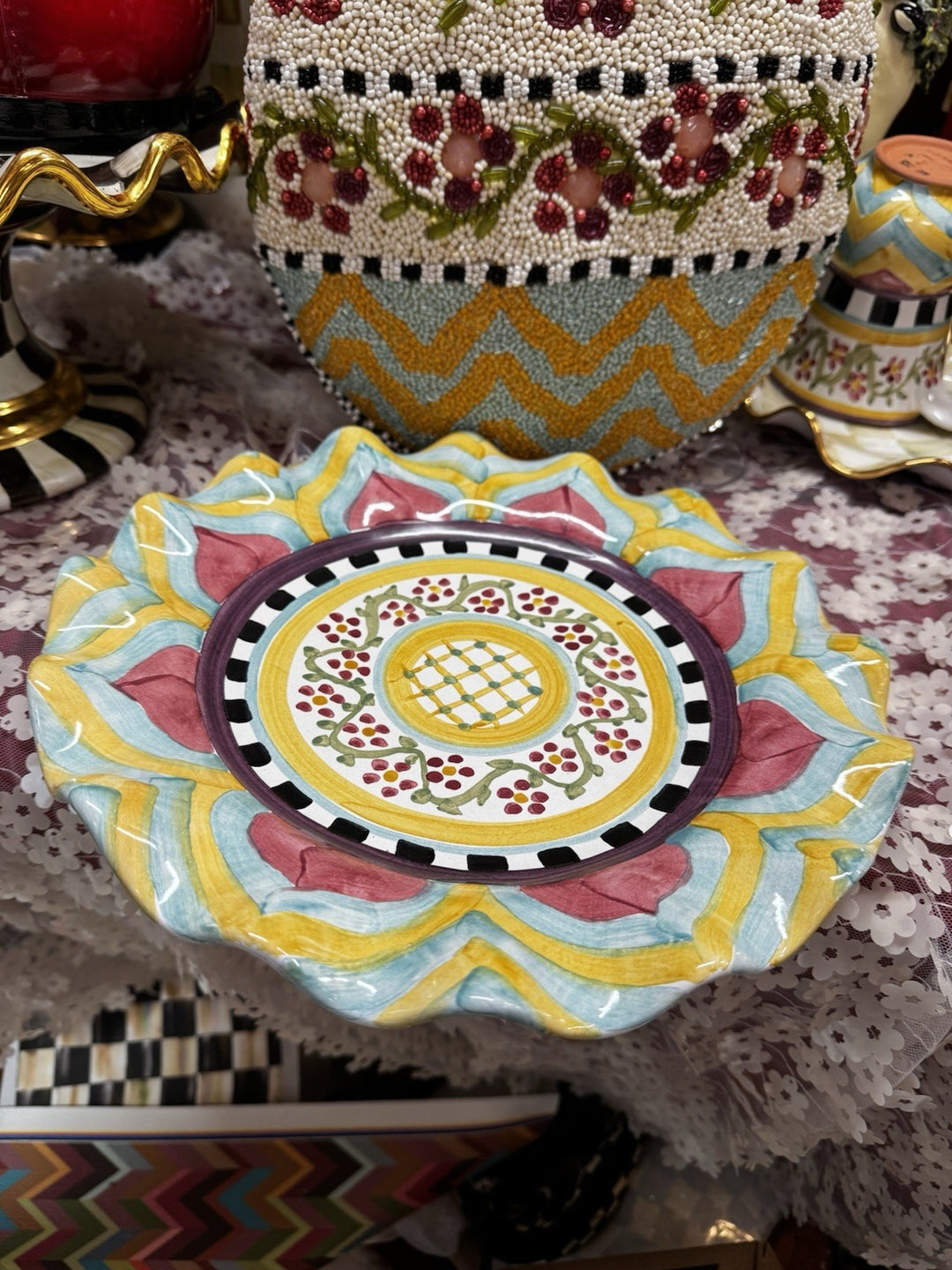 Mackenzie Childs Taylor Myrtle Bread Plate 7.25" Hand-Painted Ceramic 1993