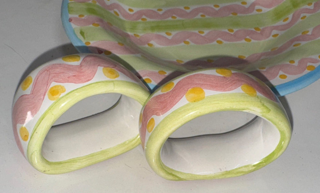 Lot of 2 Mackenzie Childs Napkin Rings Ceramic Charmain Wallcourt Excellent!