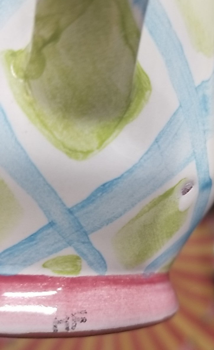 The MacKenzie Childs Wallcourt Maddox Ceramic Footed Mug is a vintage and handmade piece with a painted design that is perfect for all occasions. This round, small-sized mug has a capacity of 12 fl oz and is suitable for hot and cold beverages. The traditional style, decorated with hand-painted details, features a yellow color and is adorned with an abstract art theme. Made of ceramic and porcelain, this unique mug by MacKenzie-Childs is a collectible item that is sure to add a touch of elegance to your kitchen or home decor.