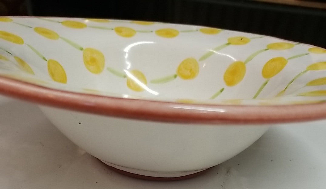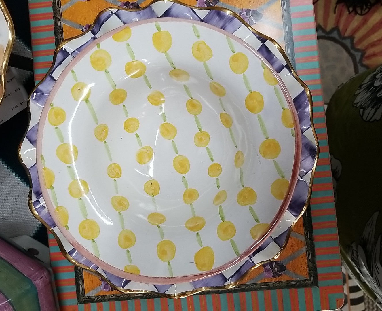 The MacKenzie-Childs Wallcourt Fenwick Ceramic Bowl is a beautifully hand-painted piece of art pottery originating from New York. This unique bowl features the Fenwick pattern in a multicolor design, with a diameter of 8.25 inches and a height of 3 inches. Produced in the United States using pottery techniques, this one-of-a-kind bowl is perfect for adding a touch of creativity and charm to any decor setting.