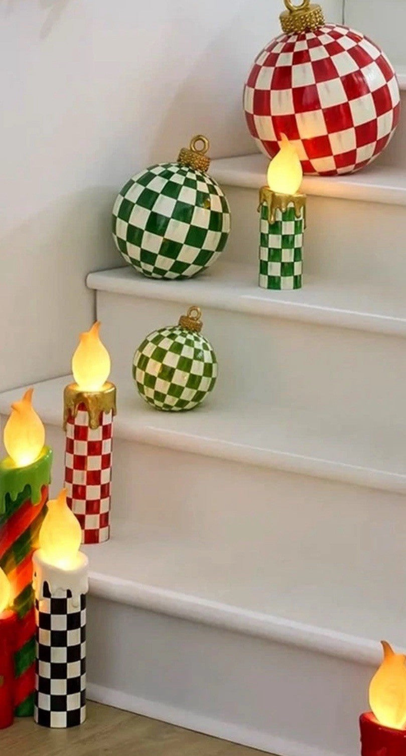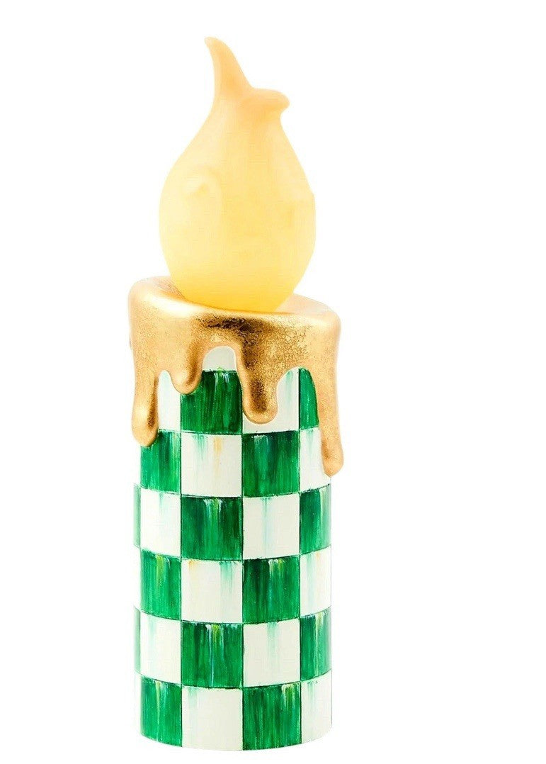 Mackenzie Childs Cozy Christmas Illuminated Green Check Melting Candle NEW