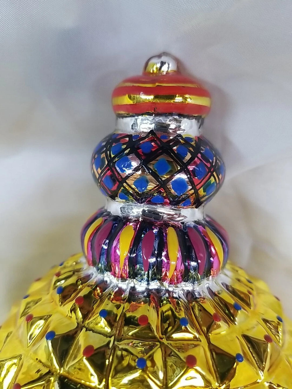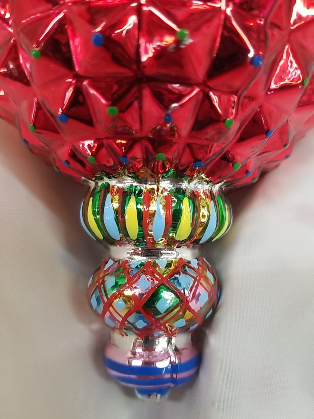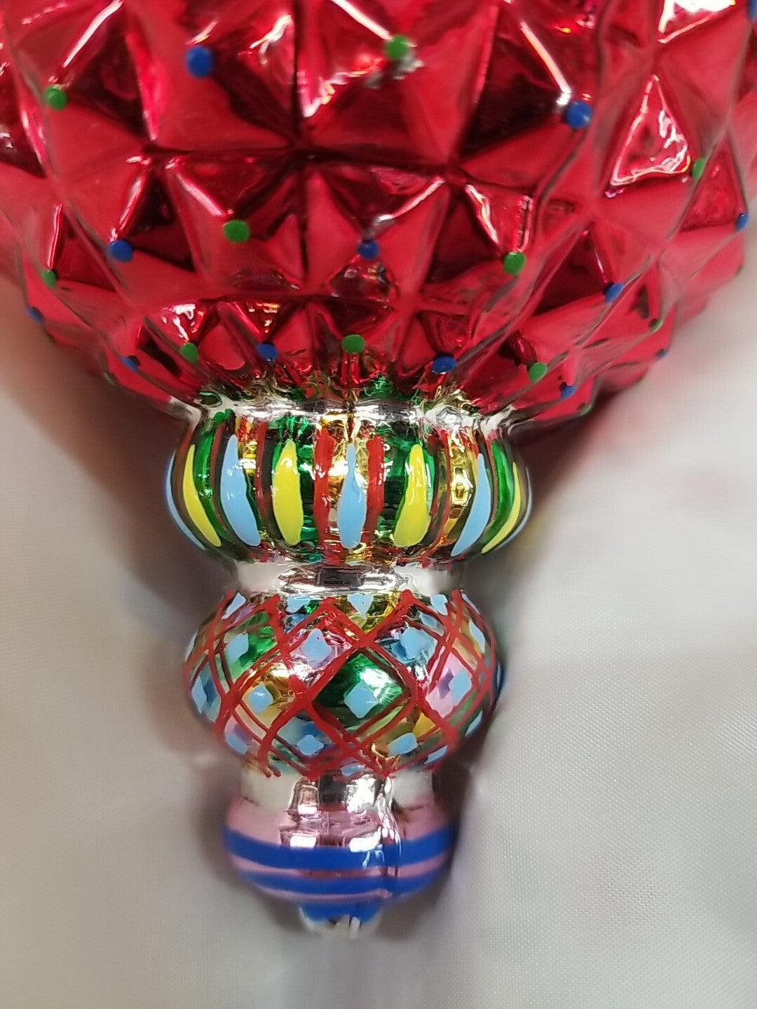 Mackenzie Childs Iridescent GLASS ICICLE Red Green, Yellow Pearls Drop Ornament