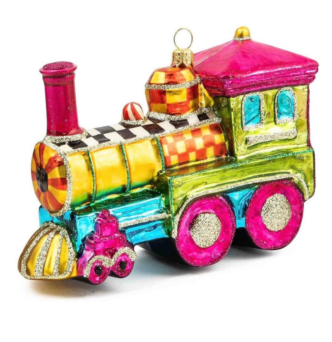 MacKenzie Childs Glass Ornament - Granny Kitsch Train- New