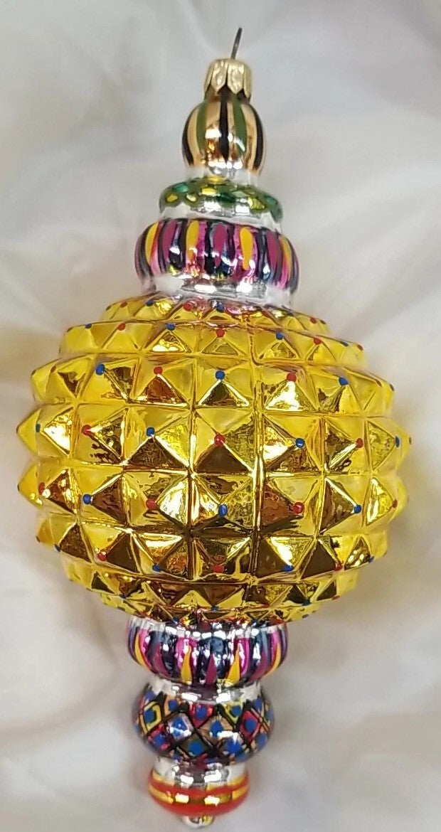 Mackenzie Childs Russian Jewel Courtly Check Yellow Ornament Glass