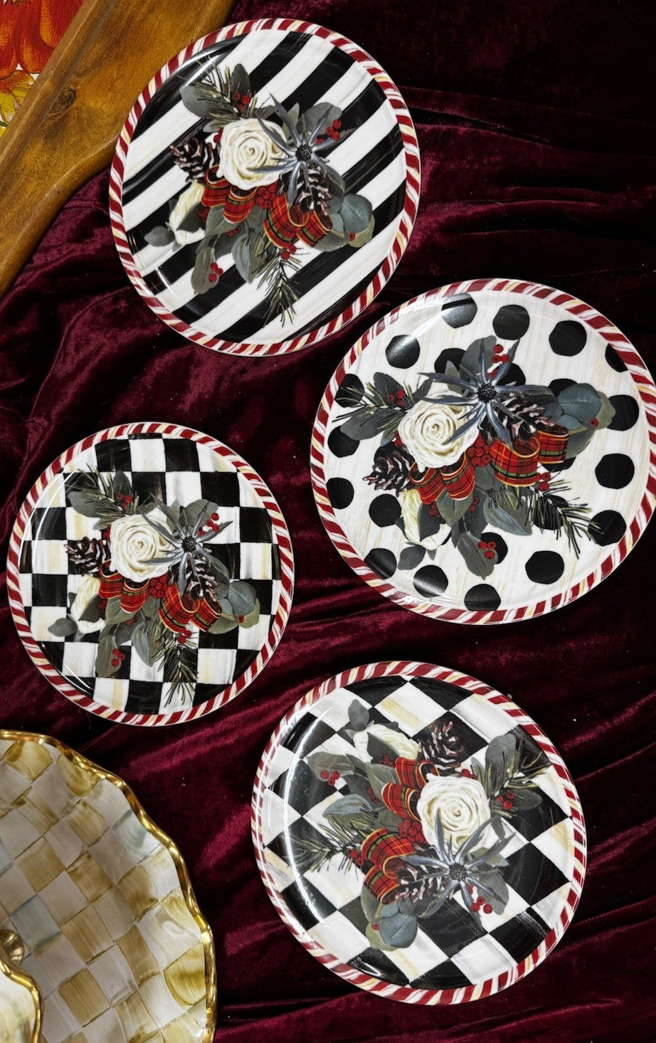 MacKenzie Childs Scottish Bouquet Set of 4 Ceramic Plates 7" Christmas NEW