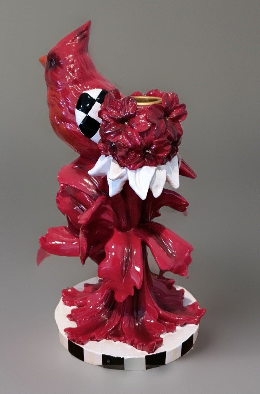 MacKenzie Childs Courtly Check Cardinal Candle Holder - 9.5” Tall New