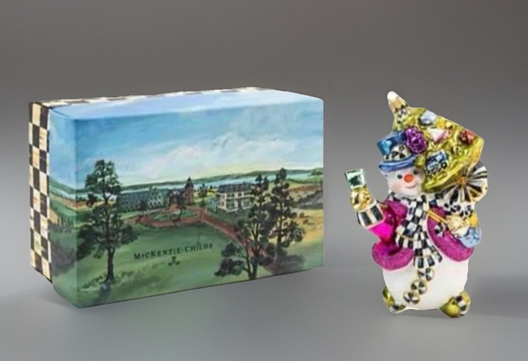 MACKENZIE CHILDS Granny Kitsch Christmas Snowman Ornament