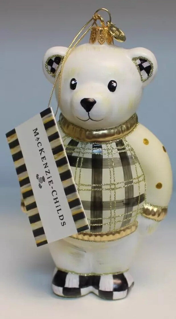 MacKenzie Childs Polar Bear Glass Christmas Ornament in Original Box- Retired