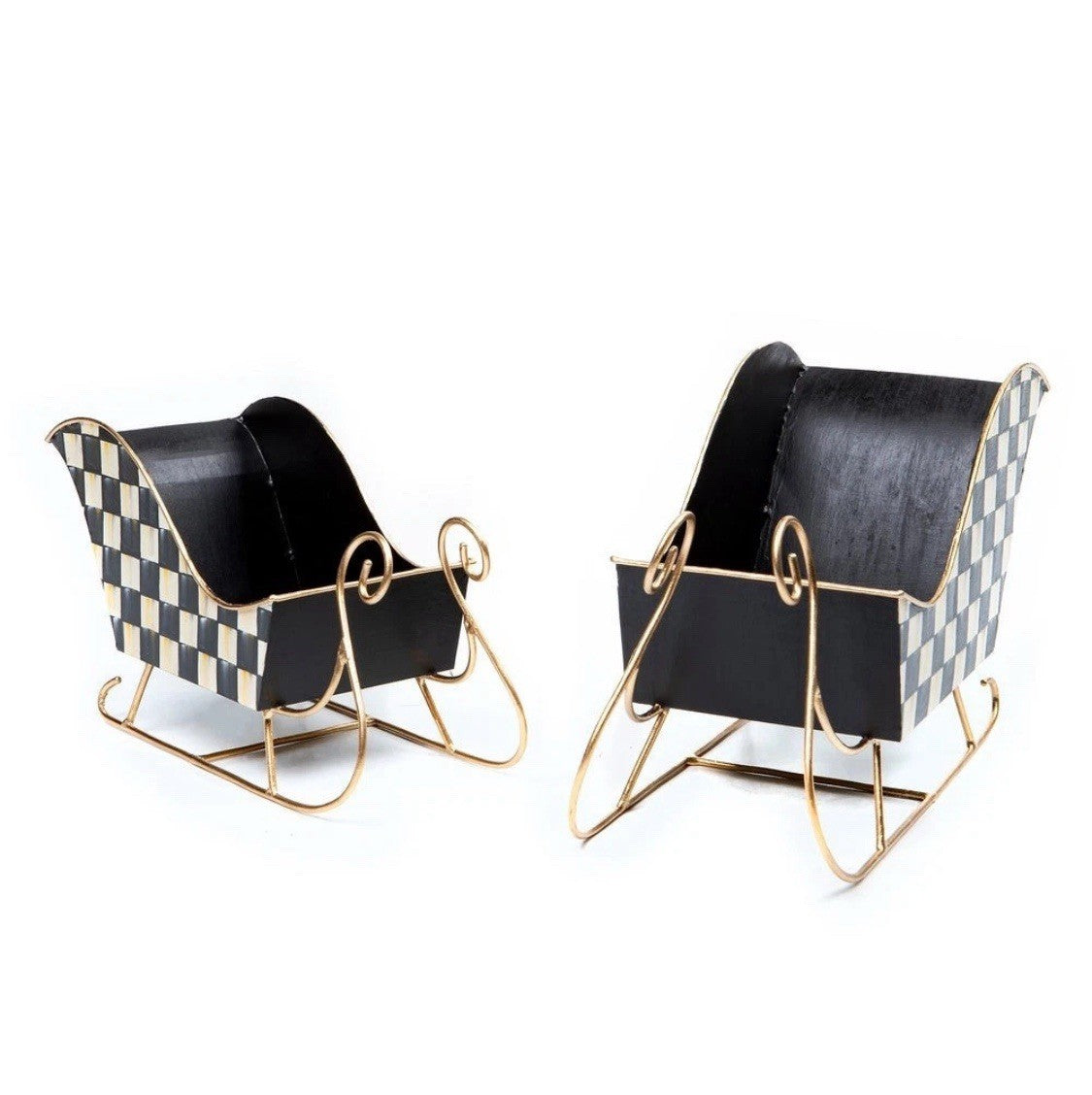 Brand New Mackenzie Childs Courtly Check Medium Tin Sleigh New In Box