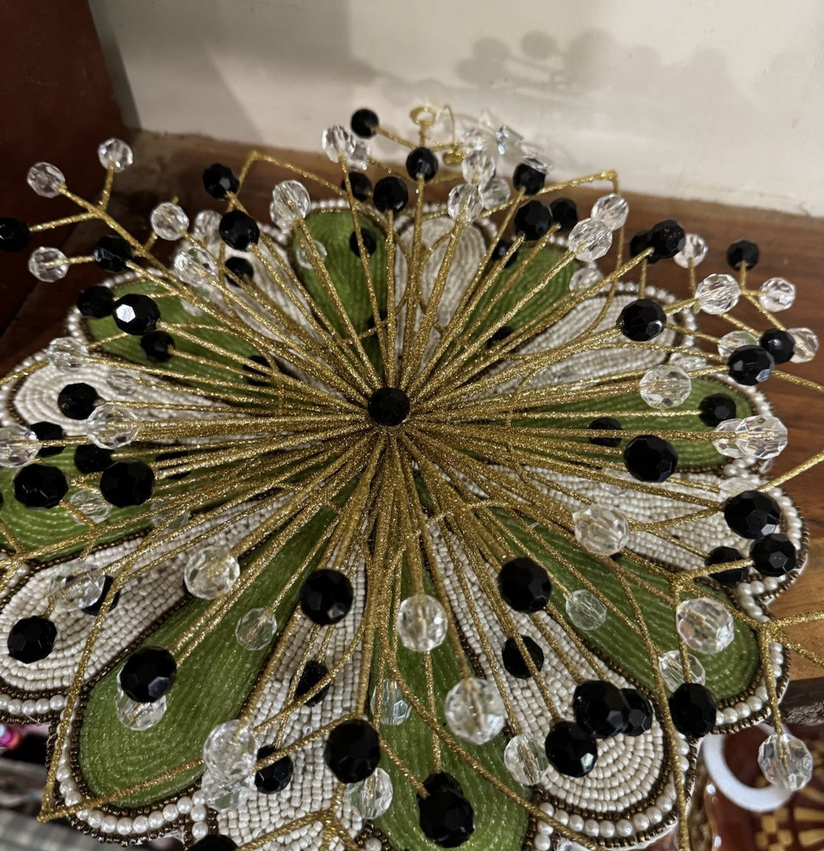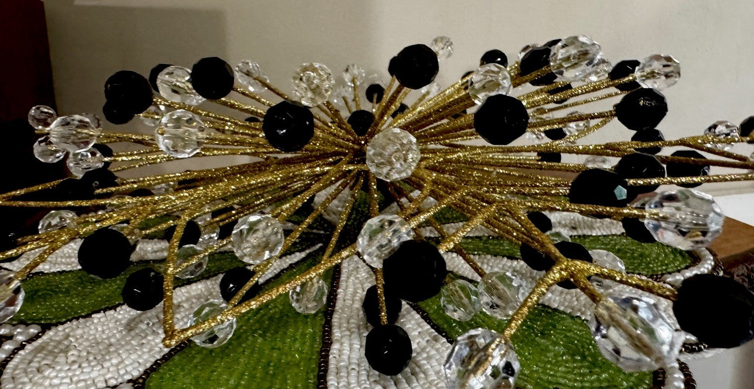 The Mackenzie Childs Gold Beaded 14" Star is a festive and elegant addition to your holiday decor. This star-shaped ornament, featuring intricate beading, adds a touch of sophistication to your Christmas tree. With its gold color and brand recognition from MacKenzie-Childs, this star is sure to be a standout piece in your holiday collection. The included hanger makes it easy to display on your tree, making it a perfect choice for those looking to add a touch of glamour to their seasonal decorations.