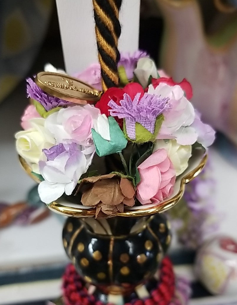MacKenzie Childs Botanica Ceramic Tassel...Inspired by Parisian gardens, our Botanica Tassel begs to be savored like a stroll through the Jardin du Luxembourg. A hand-painted ceramic vase with lush blooms is rendered in a rich palette and complemented by the familiarity of our favorite MacKenzie-2.5" dia., 10" long, 5" loop