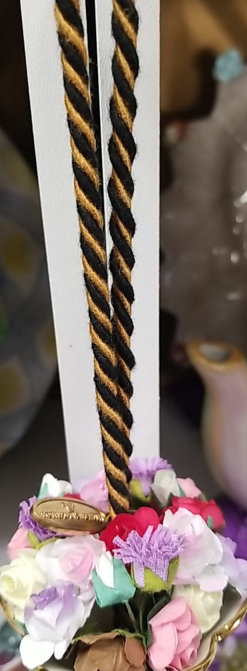 Poly-rayon thread-covered wooden tassels. Ceramic vase. Pieces may vary due to the handmade nature of each product. Imported.