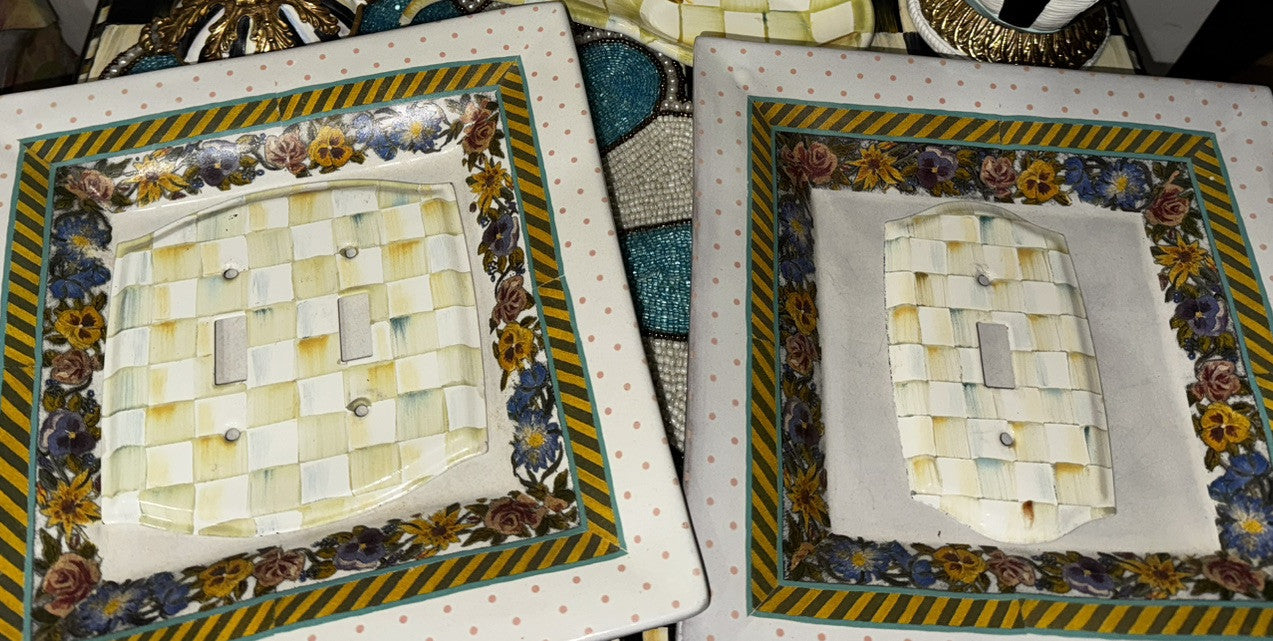 Mackenzie Childs Parchment  Check Enamel Double Light  Switch Plate Cover